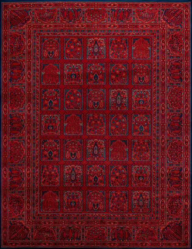 فرش خشتی سرمه ای 700 شانه + فرش پادری گل مرغ آبی رویال ۱۵۰۰ شانه