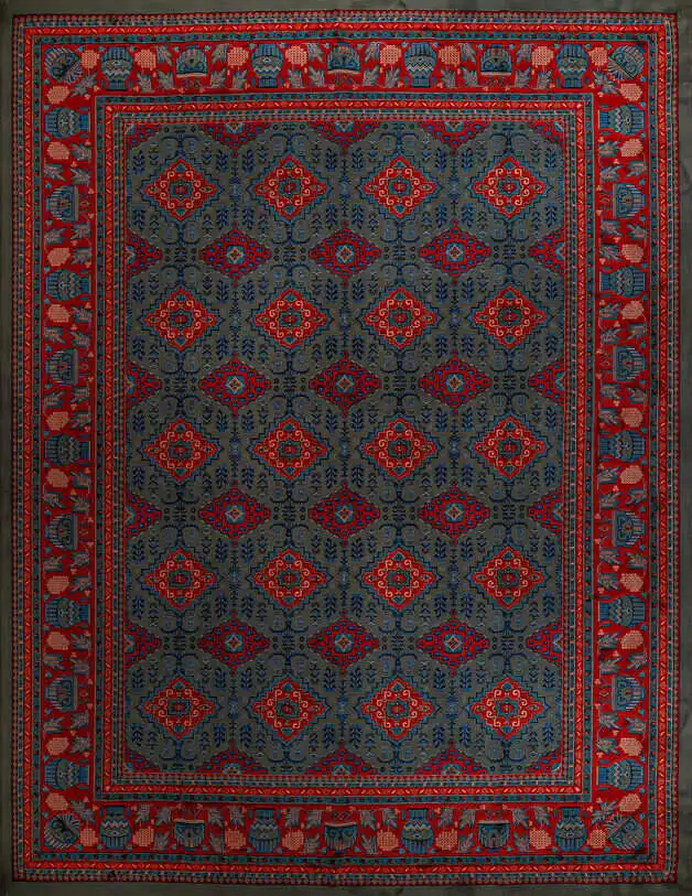 فرش لوزی دودی 700 شانه + فرش پادری گل مرغ قهوه ای ۱۵۰۰ شانه