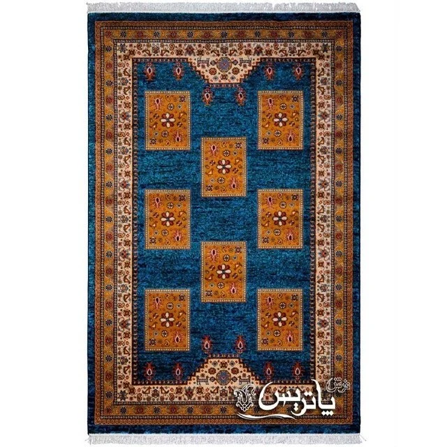 فرش مهشید آبی رویال ۱۵۰۰ شانه + فرشگلیم طرح 9936B رنگی ۴۰۰ شانه