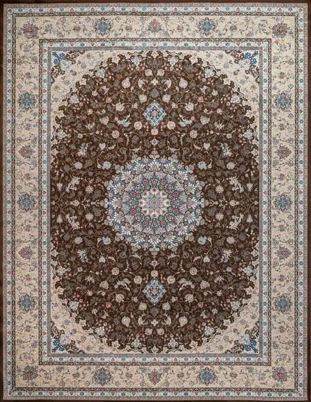 فرش مهشید قهوه ای 1500 شانه + فرشگلیم هریس روستایی سرمه ای 400 شانه