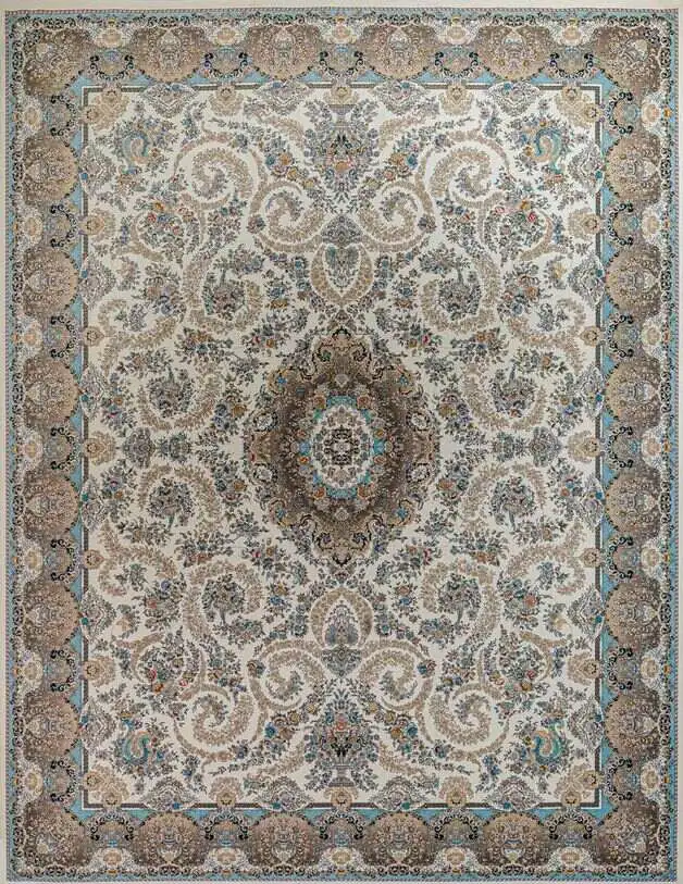 فرش مهوین کرم ۱۵۰۰ شانه + فرشگلیم هریس روستایی سرمه ای ۴۰۰ شانه