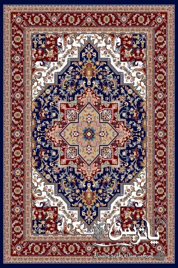 فرش مروارید موکا 1200 شانه + فرشگلیم هریس روستایی سرمه ای